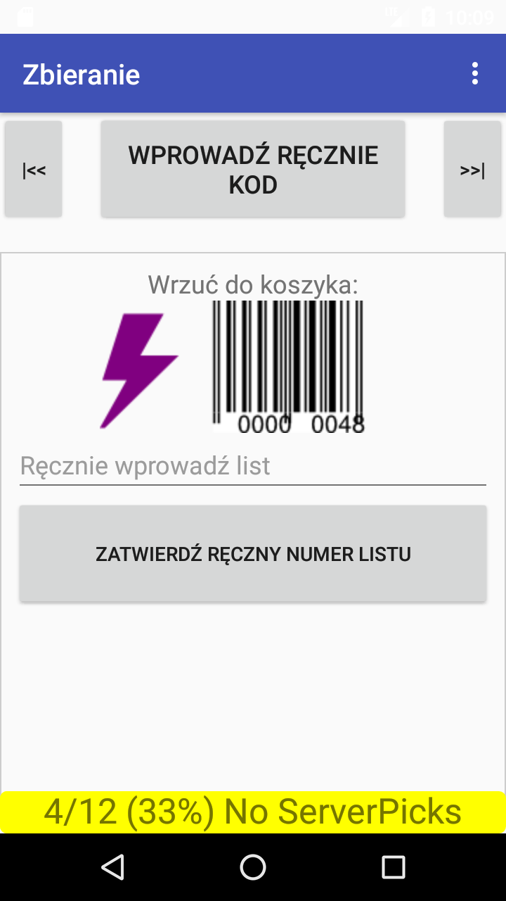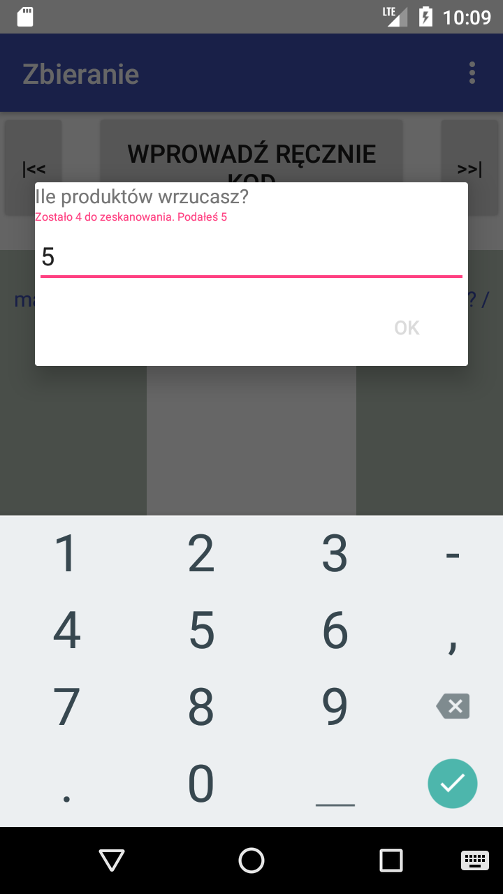 Aplikacja działająca na urządzeniu z systemem Android ze zintegrowanym czytnikiem kodów.