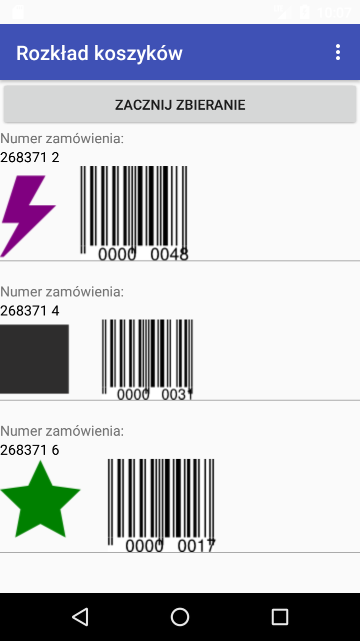Aplikacja pokaże, do którego koszyka trafić ma zamówienie.